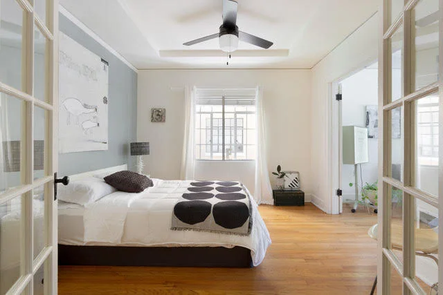 #106, a Sun-filled vintage Belvedere Condo. Built in 1927, this stucco period Mediterranean building and unit has retained the formality of period details along with modern necessities, striking the perfect balance between old and new. Airy corner unit with South facing windows along the front and calming East facing windows along one wall, light with a wonderful layout, it lives larger than imagined. Wood floors, original kitchen cabinets and bathroom vanity, sweet details such as the original ice box, now great cabinet space to use.
